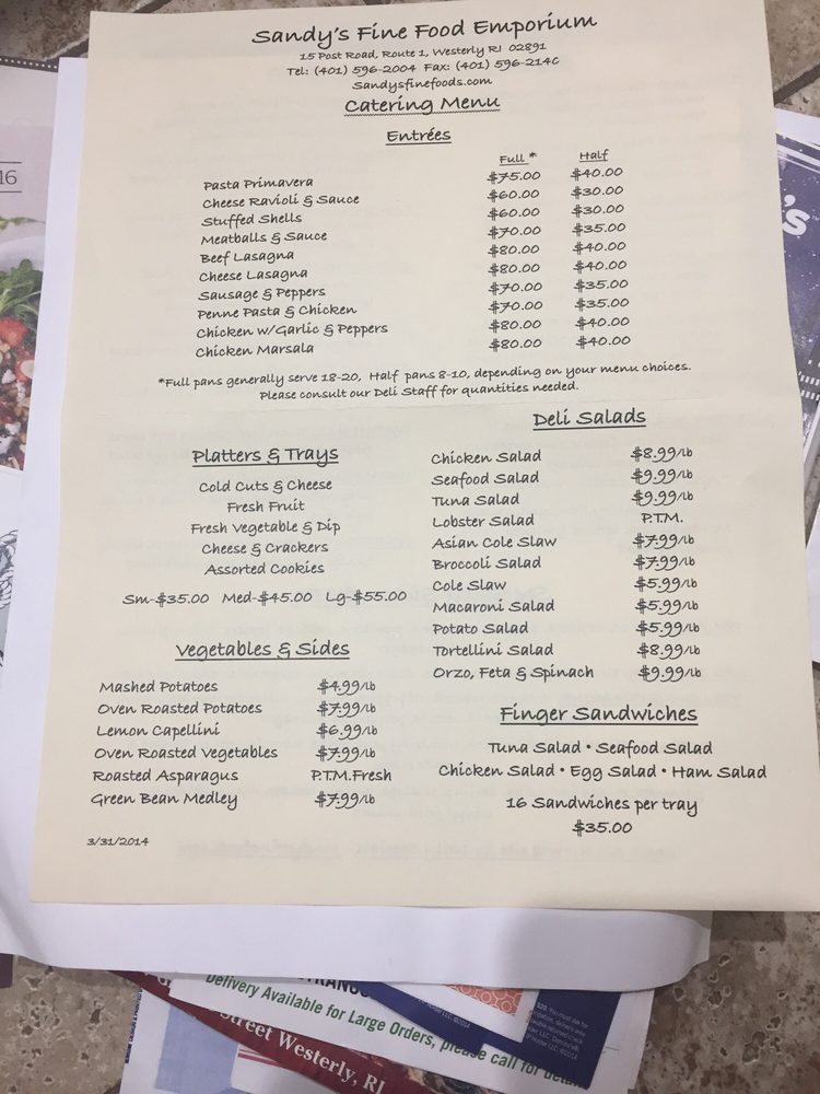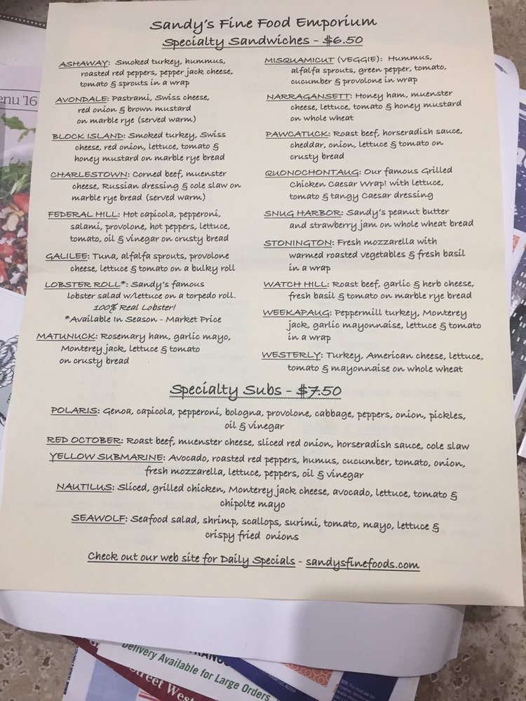 Introducing Sandy's Fine Food Emporium, a specialty food emporium located at 15 Post Rd Westerly, RI. This gem offers a variety of delicious sandwiches, fresh grocery items, and specialty foods. Customers rave about the fresh and tasty menu options, including the must-try lobster salad. The sandwiches are a hit, with customers loving the quality ingredients and fresh bread. Apart from the mouthwatering sandwiches, Sandy's also offers delectable desserts like tiramisu. While some items may be a bit pricey, the quality and taste make it worth every penny. With excellent service, a wide selection of pasta salads, and the option to customize your meal, Sandy's Fine Food Emporium is the perfect stop before hitting the beach. Don't miss out on the best lobster rolls and seafood salads in town at this hidden foodie haven.